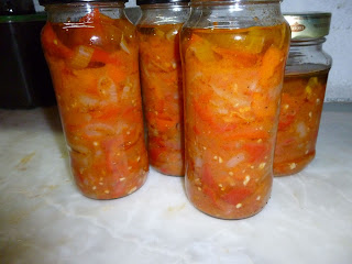 I was kindly given a pile of peppers and tomatoes by my neighbour, I haven't really been here this year to grow anything so anything seasonal is gratefully received and as the pantry is fairly empty now of preserves and chutneys etc. the gift was timely......but i had to come up with some recipes that were fairly basic and quick as produce doesn't last long in the heat of the summer and I am low on difficult to get ingredients, so this is what I did: